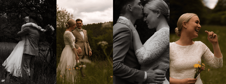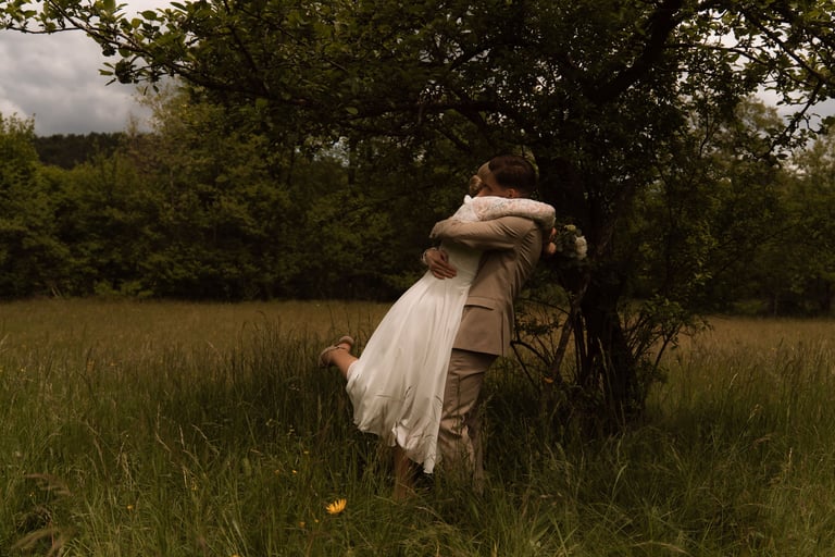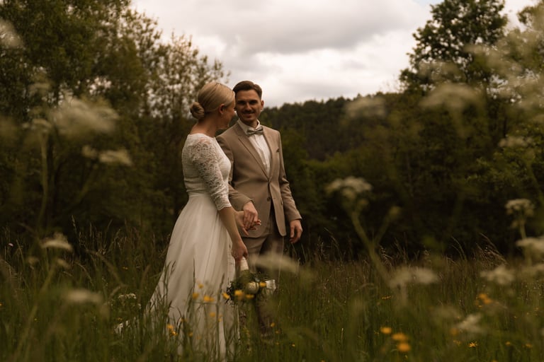 Als Hochzeitsfotografin durfte ich dieses besondere Paar begleiten, das sich bewusst für eine minimalistische Hochzeit entschieden hat. Ein zarter Brautstrauß, liebevoll ausgewählt, und ein paar enge Vertraute begleiteten die Feier. Der Fokus lag auf dem Wesentlichen: Aufeinander, auf das gemeinsame Ja, auf echte Gefühle.